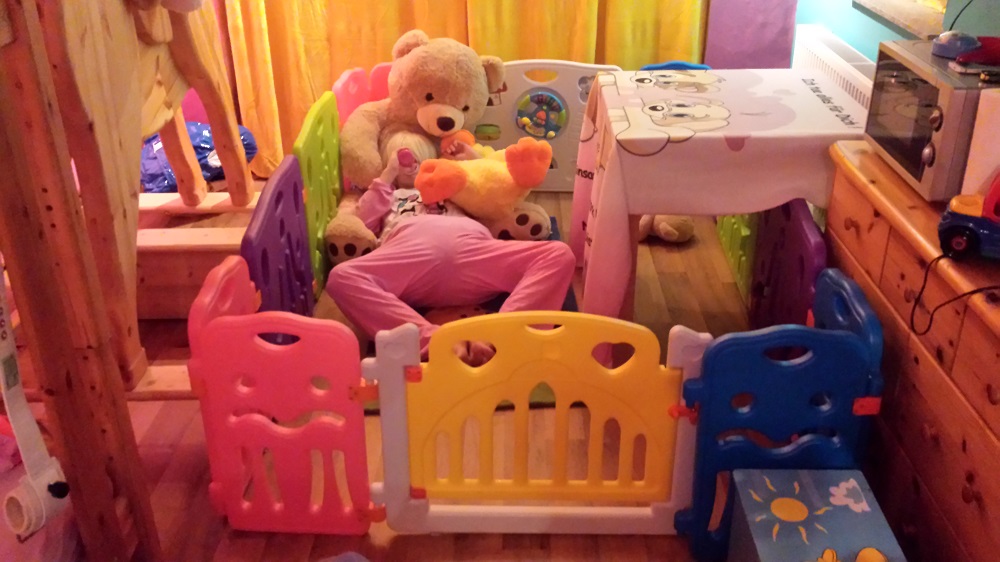 Ein Laufstall zum Spielen im Adult Baby Zimmer