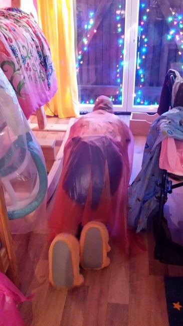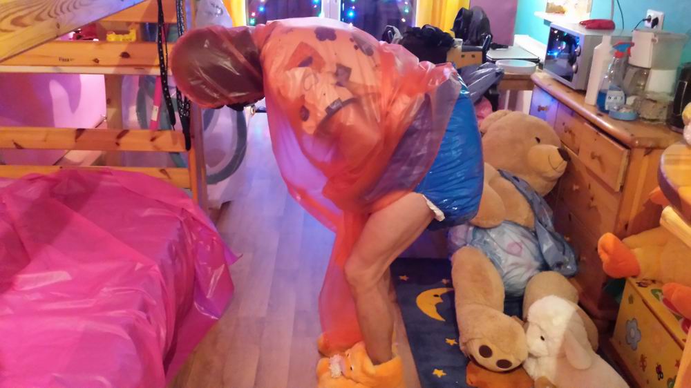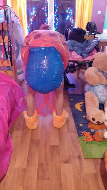 Adult Baby Girl im PVC Rüschenhöschen.