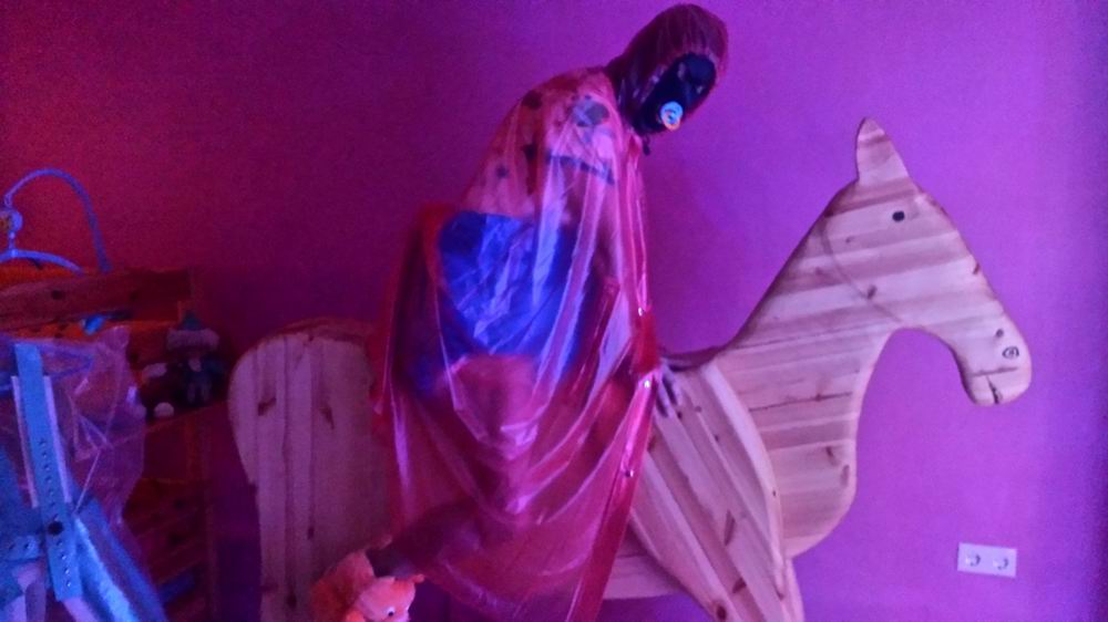 Windelträger in PVC auf dem Schaukelpferd